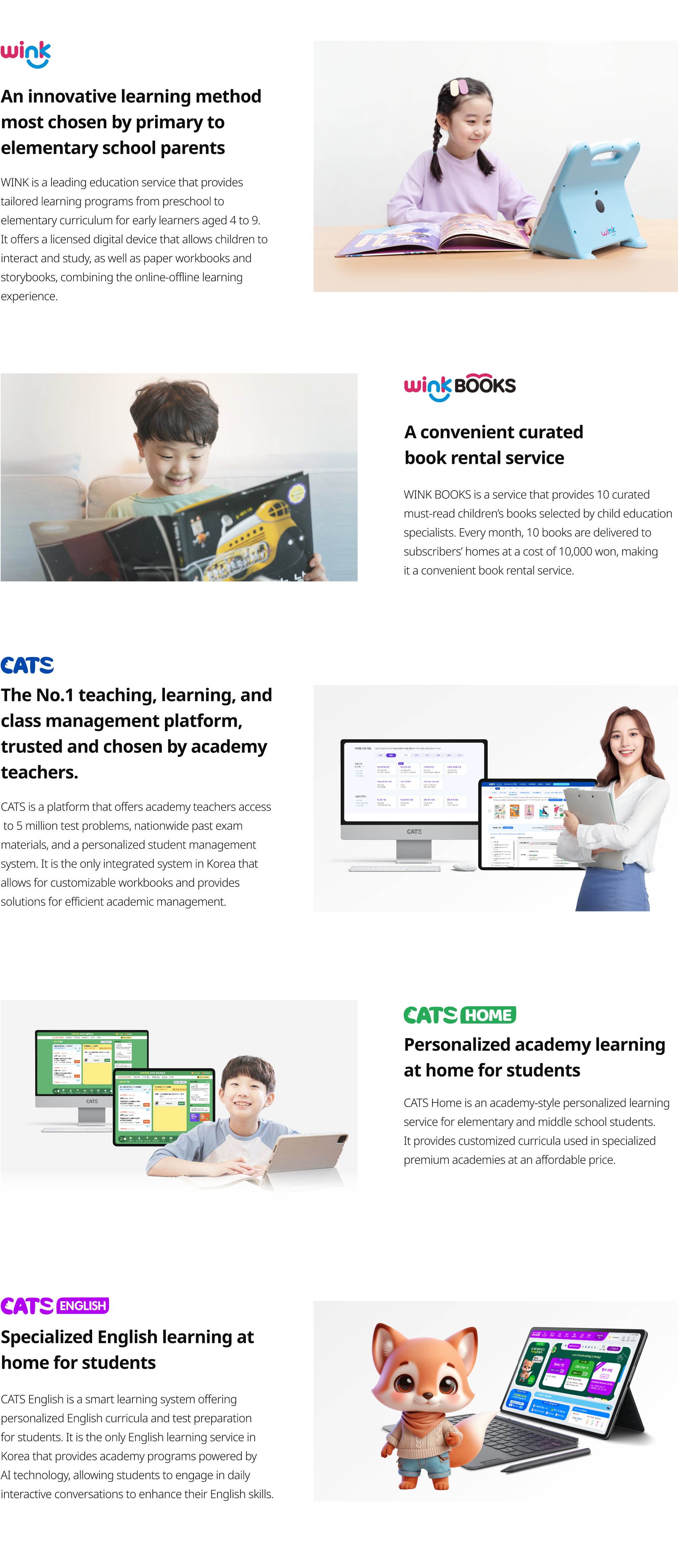 Building on our success, we introduced ‘CATS’ and ‘CATS HOME’, integrated platforms that significantly reduce lesson preparation time for academy teachers and provides customized curriculum for students at home respectively.